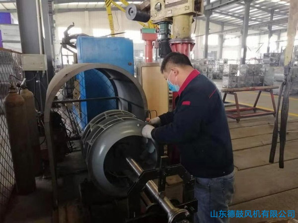 在企業(yè)生產(chǎn)車間,記者看到,工人們正在緊張忙碌,他們要在明早之前緊急趕制出批47套風(fēng)機(jī)設(shè)備。